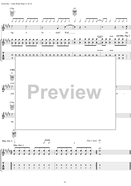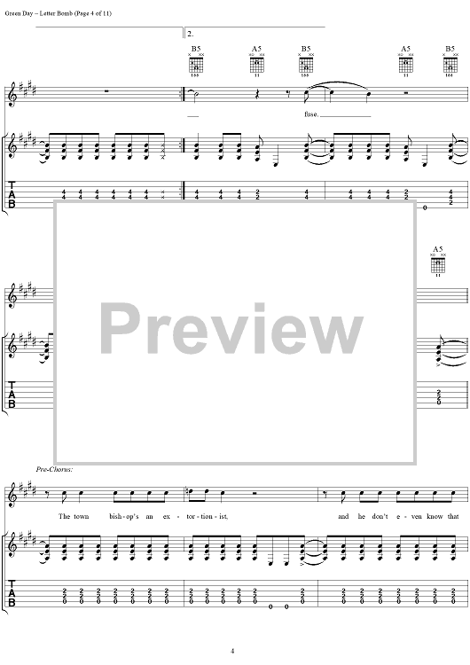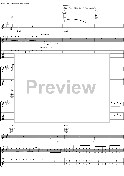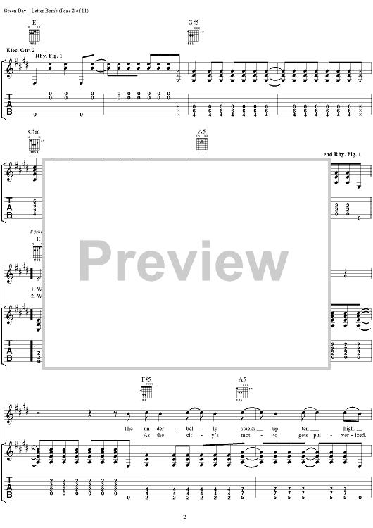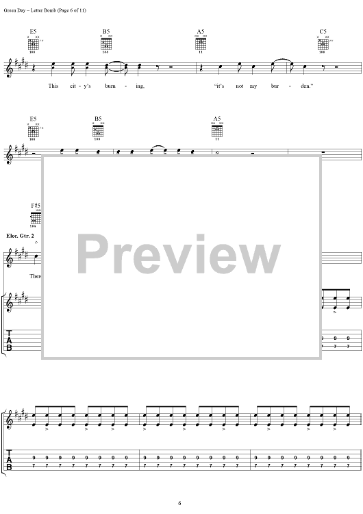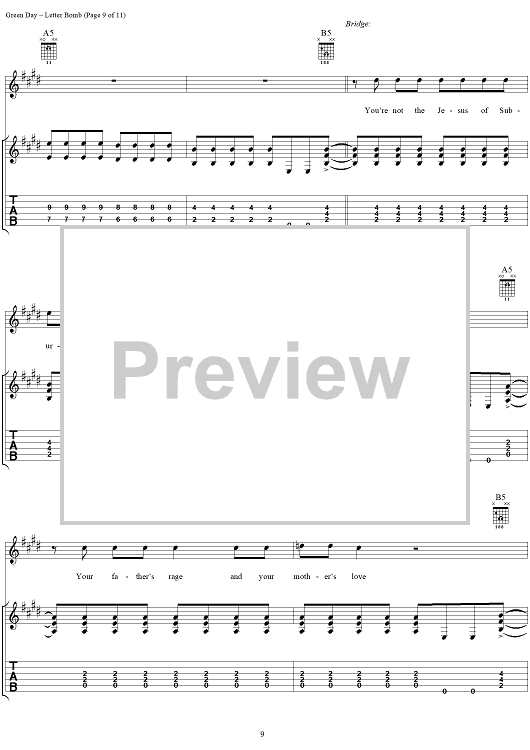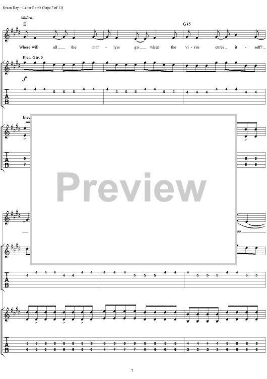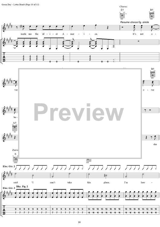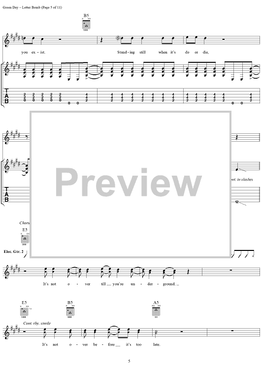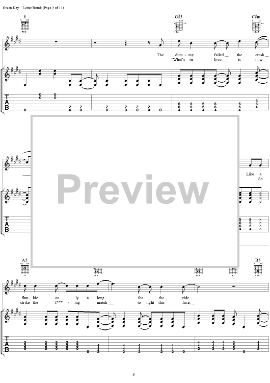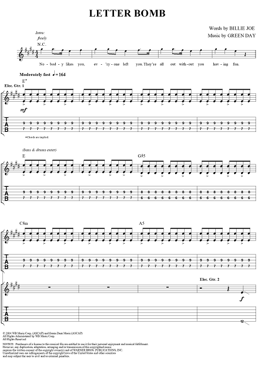 Digital Sheet Music for Letter Bomb by Green Day, Billie Joe scored for Guitar Tab/Vocal; id:308504