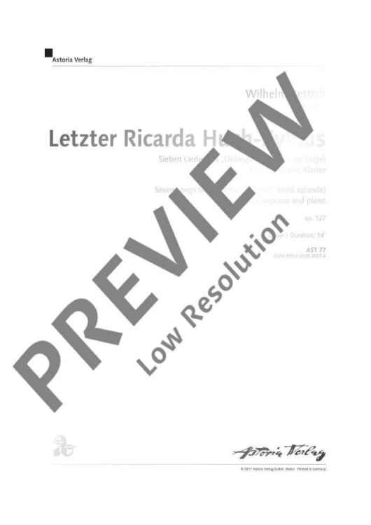 Digital Sheet Music for Letzter Ricarda Huch-Zyklus by Wilhelm Rettich scored for Soprano And Piano; id:495412