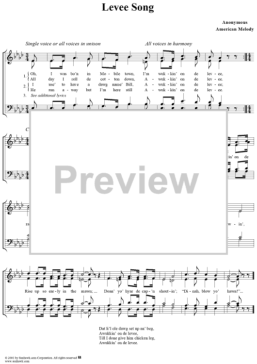 Digital Sheet Music for Levee Song by Unknown Writer scored for SATB Chorus; id:249560