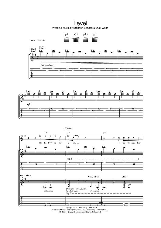 Digital Sheet Music for Level by Brendan Benson, The Raconteurs, Jack White scored for Guitar Tab; id:394093