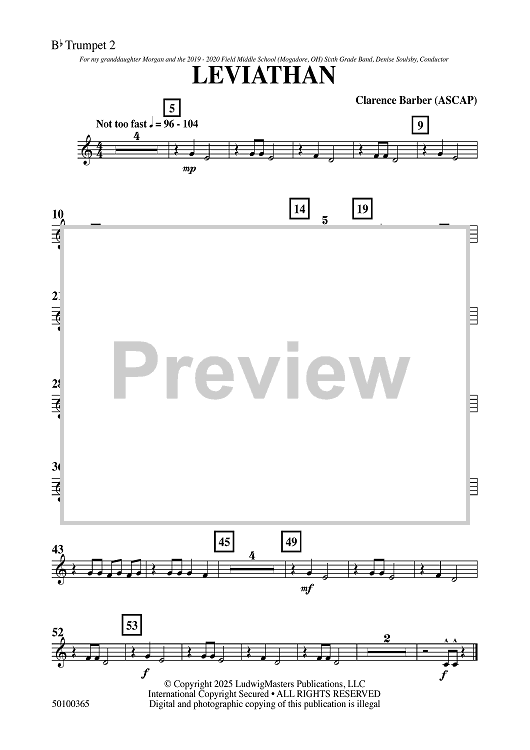 Digital Sheet Music for Leviathan - Bb Trumpet 2 by Clarence Barber scored for Concert Band; id:509535