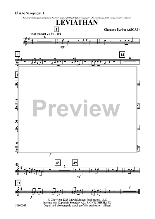 Digital Sheet Music for Leviathan - Eb Alto Saxophone 1 by Clarence Barber scored for Concert Band; id:509530