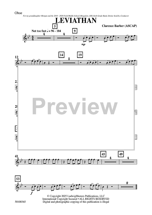 "Leviathan - Oboe" Sheet Music by Clarence Barber