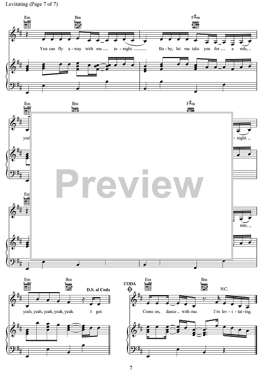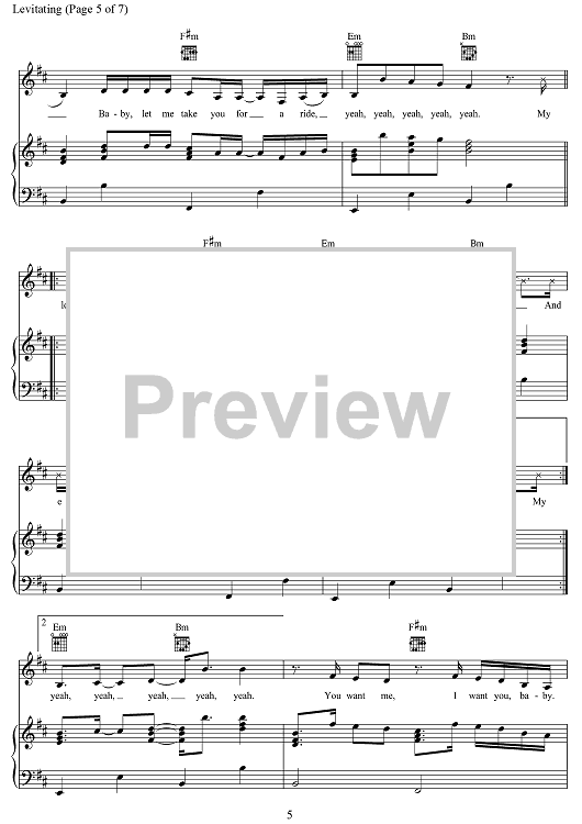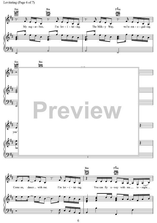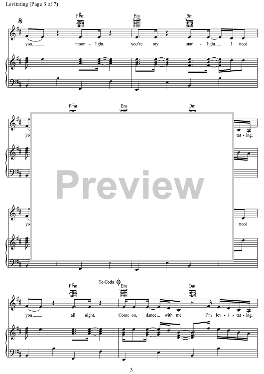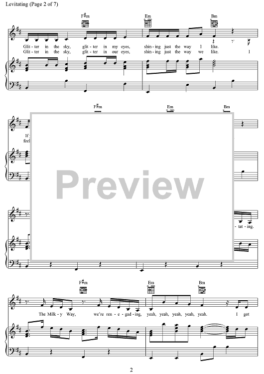 Digital Sheet Music for Levitating by Sarah Hudson, Clarence Coffee Jr., Dua Lipa, Stephen Kozmeniuk scored for Piano/Vocal/Chords; id:469209