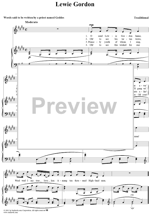 Digital Sheet Music for Lewie Gordon by Traditional scored for Piano/Vocal; id:258655