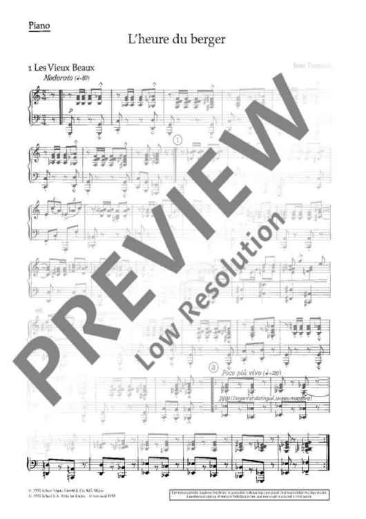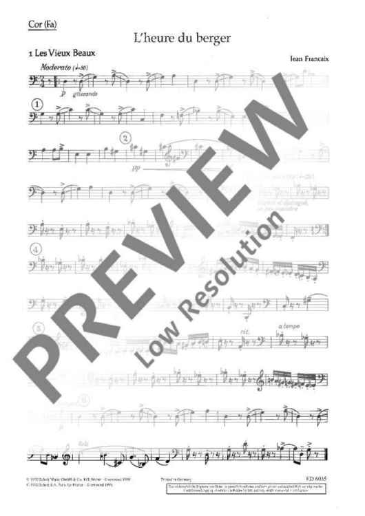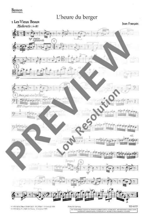 Digital Sheet Music for L'heure du berger - Set of Parts by Jean Françaix scored for Flute, Oboe, Clarinet, Bassoon, Horn And Piano; id:473530