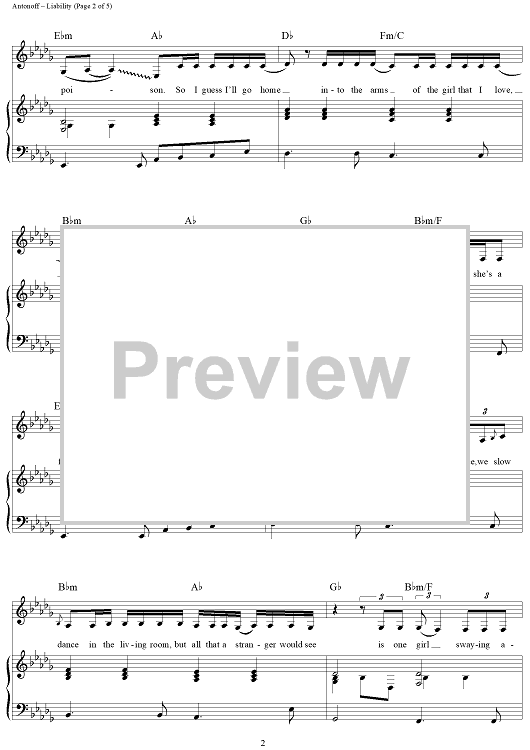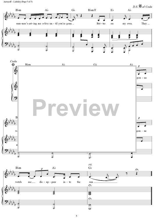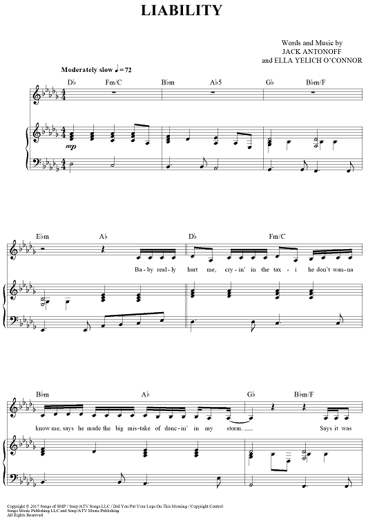 Digital Sheet Music for Liability by Jack Antonoff, Lorde, Ella Yelich-O'Connor scored for Piano/Vocal/Chords; id:464100