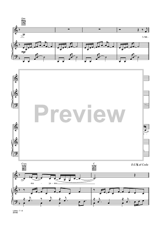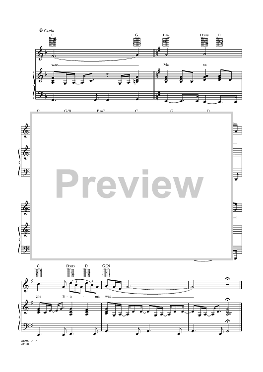 Digital Sheet Music for LIAMA (from “La Nouba”) by Benoit Jutras scored for Piano/Vocal/Chords; id:436745
