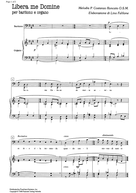 Digital Sheet Music for Libera me Domine by Lino Falilone, Costanzo Roncato scored for Baritone/Organ; id:331911