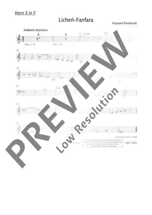 "Lichén-Fanfara - Score and Parts" Sheet Music by Krzysztof Penderecki