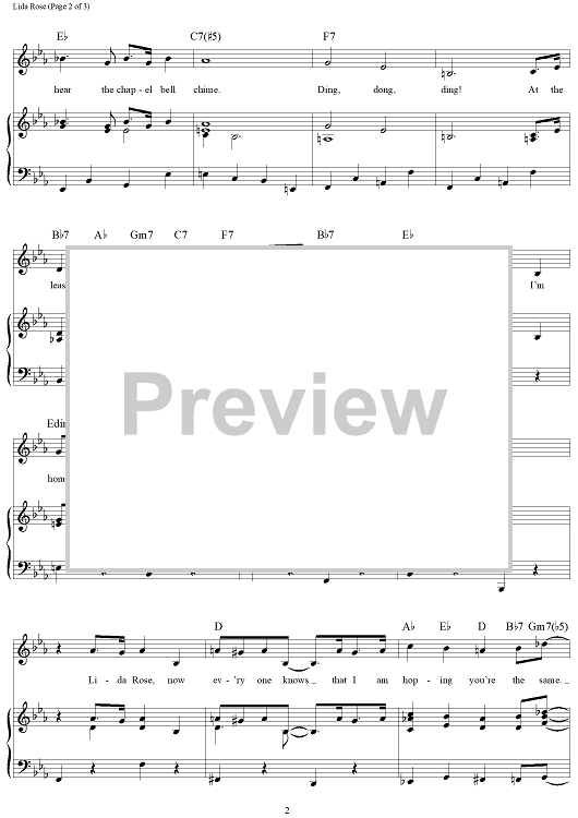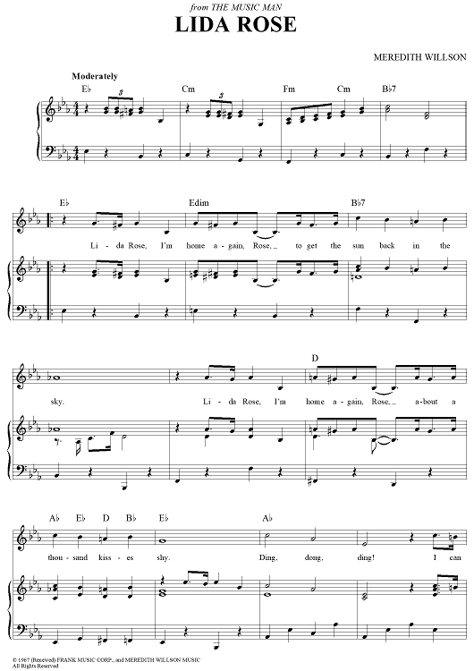 Digital Sheet Music for Lida Rose by Meredith Willson scored for Piano/Vocal/Chords; id:396041