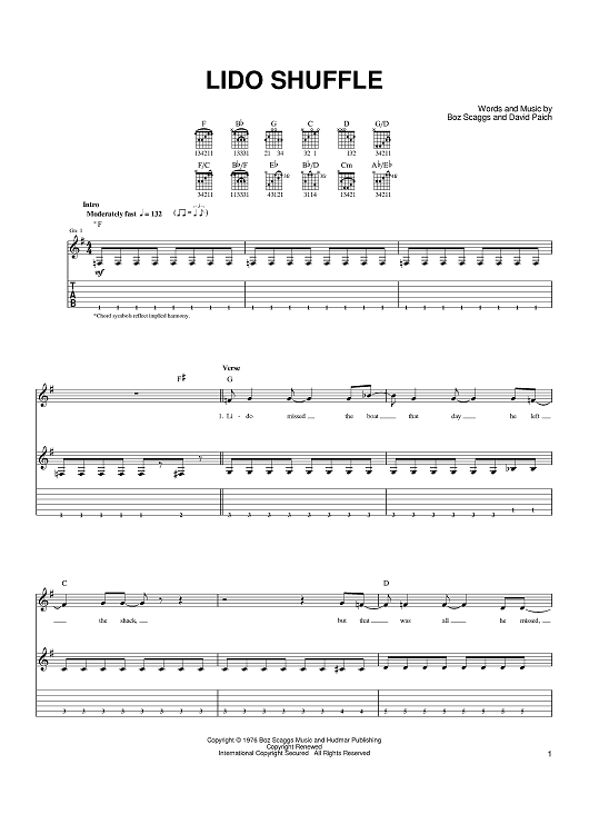 Digital Sheet Music for Lido Shuffle by David Paich, Boz Scaggs scored for Easy Guitar Tab; id:396571