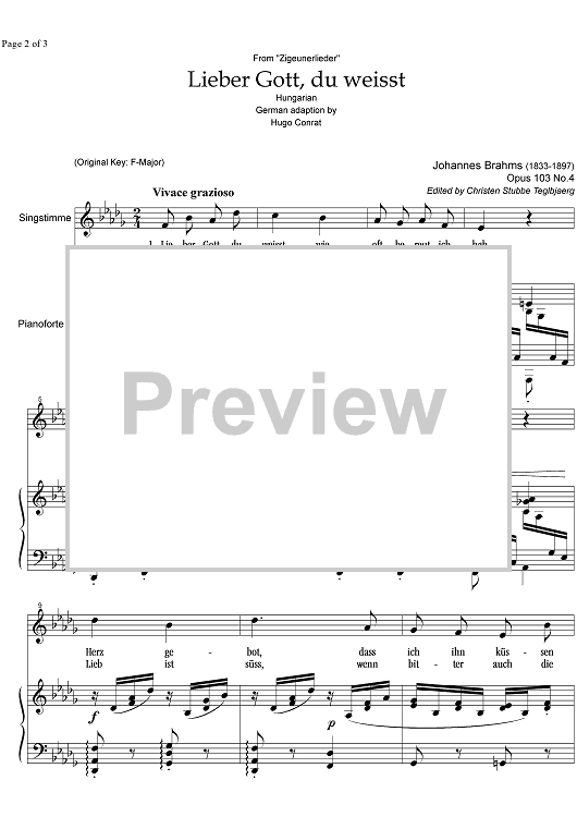 Digital Sheet Music for Lieber Gott, du weisst Op.103 No. 4 by Johannes Brahms scored for Alto or Bass/Piano; id:334042