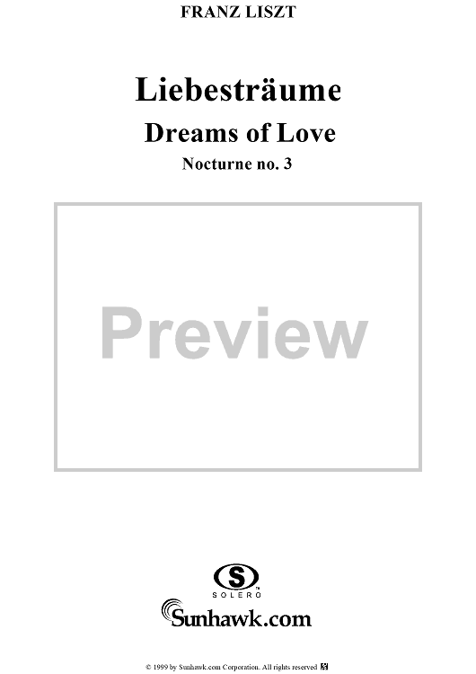"Liebesträume, Notturno No. 3 - Piano Score" Sheet Music by Franz Liszt