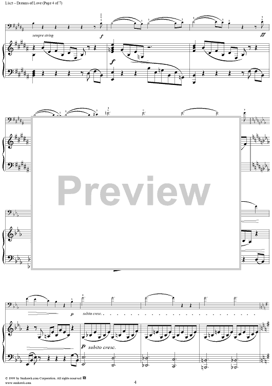 Digital Sheet Music for Liebesträume, Notturno No. 3 - Piano Score by Franz Liszt, Mark Skalmer scored for Cello/Piano; id:251430