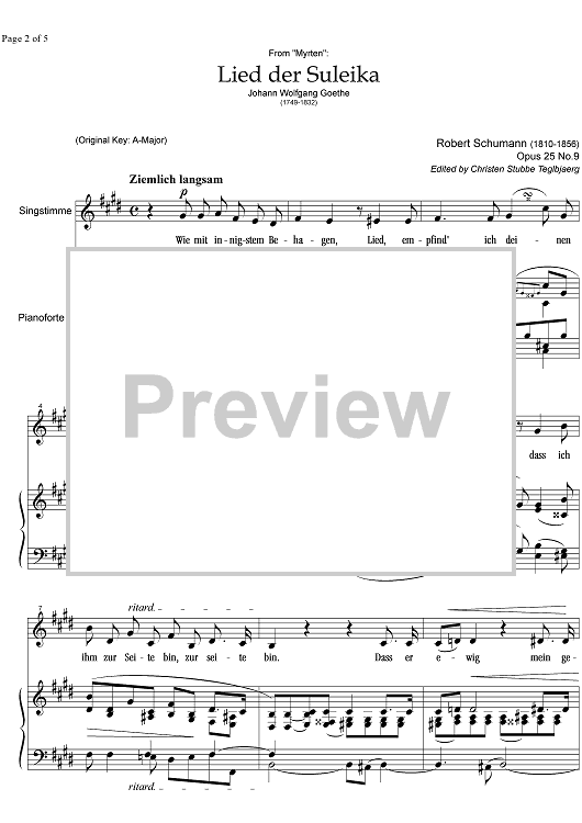 "Lied der Suleika Op.25 No. 9" Sheet Music by Robert Schumann