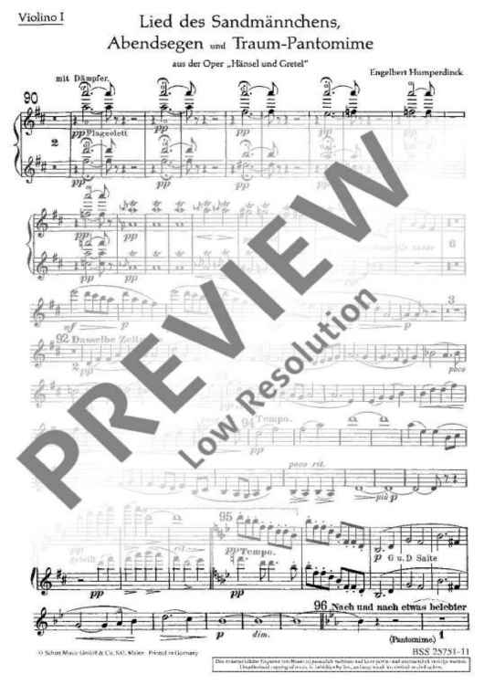 Digital Sheet Music for Lied des Sandmännchens - Violin 1 by Engelbert Humperdinck scored for Large Orchestra; id:471386
