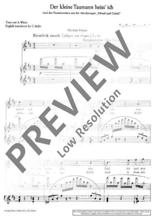 Digital Sheet Music for Lied des Taumännchens by Engelbert Humperdinck scored for Soprano And Piano; id:471391