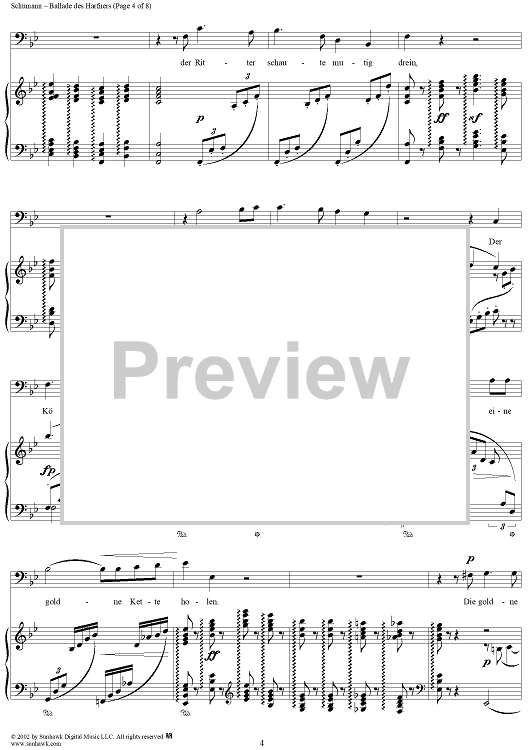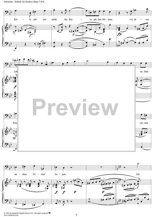 Digital Sheet Music for Lieder und Gesänge aus Wilhelm Meister, Op. 98a, No. 2 - Ballade des Harfners - No. 2 from "Lieder and Songs from Wilhelm Meister" op. 98a by Johann Wolfgang von Goethe, Robert Schumann scored for Voice/Piano; id:258613