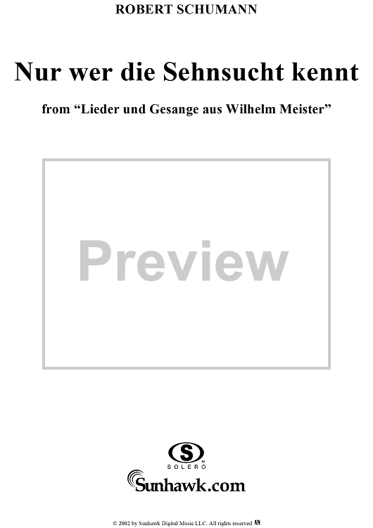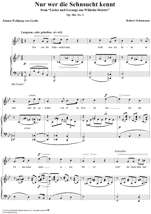 "Lieder und Gesänge aus Wilhelm Meister, Op. 98a, No. 3 - Nur wer die Sehnsucht kennt - No. 3 from "Lieder and Songs from Wilhelm Meister" op. 98a" Sheet Music by Robert Schumann