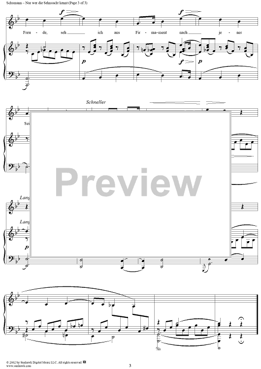 Digital Sheet Music for Lieder und Gesänge aus Wilhelm Meister, Op. 98a, No. 3 - Nur wer die Sehnsucht kennt - No. 3 from "Lieder and Songs from Wilhelm Meister" op. 98a by Johann Wolfgang von Goethe, Robert Schumann scored for Voice/Piano; id:258622