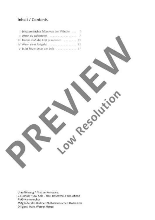 Digital Sheet Music for Lieder von einer Insel - Full Score by Hans Werner Henze scored for Chamber Choir, Trombone, 2 Cellos, Double Bass, Portative, Percussion And Timpani; id:474046