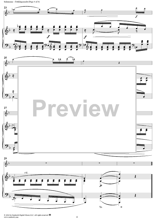"Liederkreis, Op. 39, No. 12, "Frühlingsnacht" (Spring night), - Piano" Sheet Music by Robert Schumann