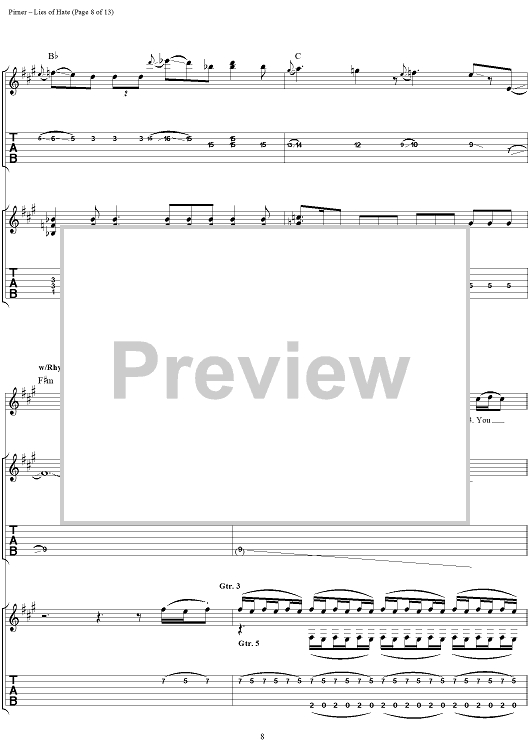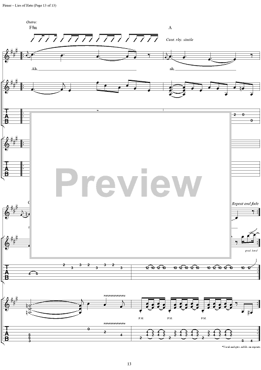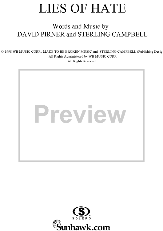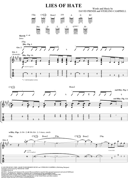 Digital Sheet Music for Lies of Hate by David Pirner, Sterling Campbell, Soul Asylum scored for Guitar Tab/Vocal; id:112081