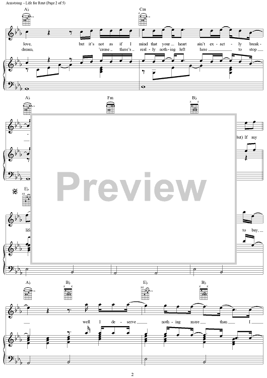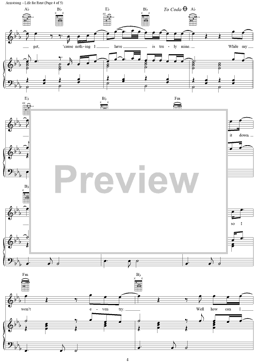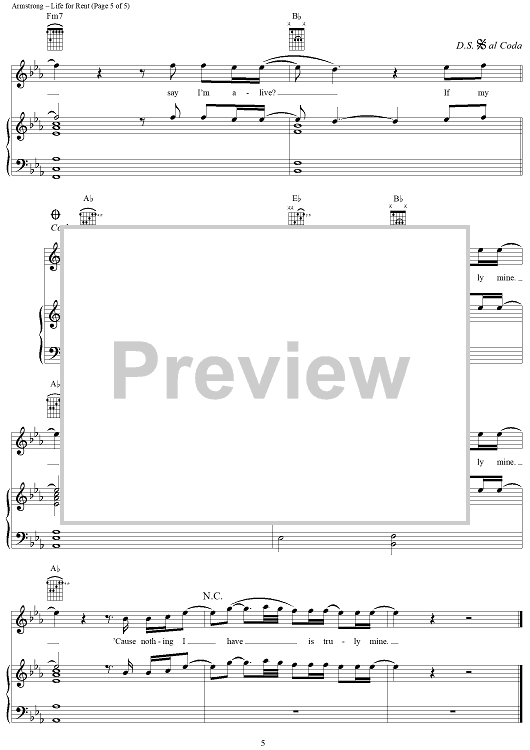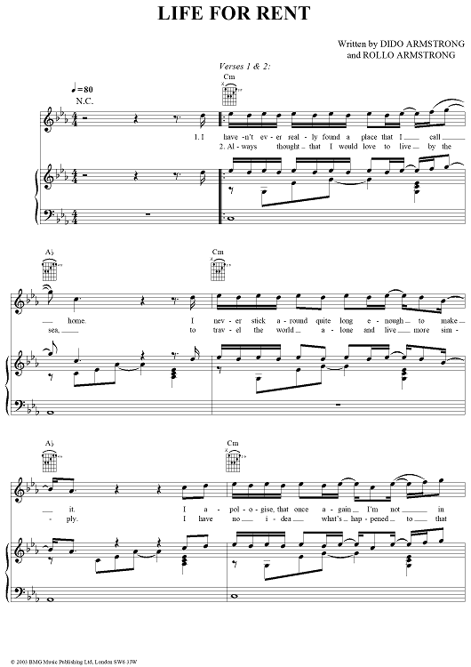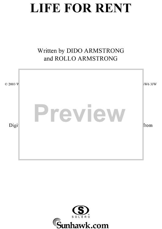Digital Sheet Music for Life for Rent by Dido Armstrong, Dido, Rollo Armstrong scored for Piano/Vocal/Chords; id:305302