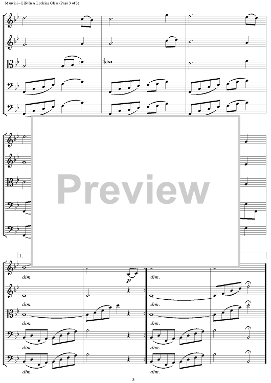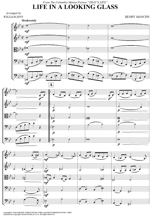 Digital Sheet Music for Life In A Looking Glass - Score by Henry Mancini, William Zinn scored for String Ensemble; id:458004