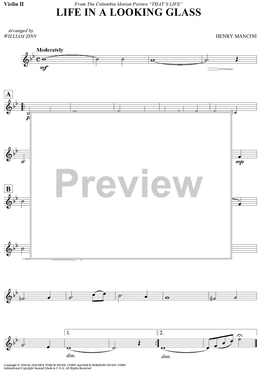"Life In A Looking Glass - Violin 2" Sheet Music by Henry Mancini