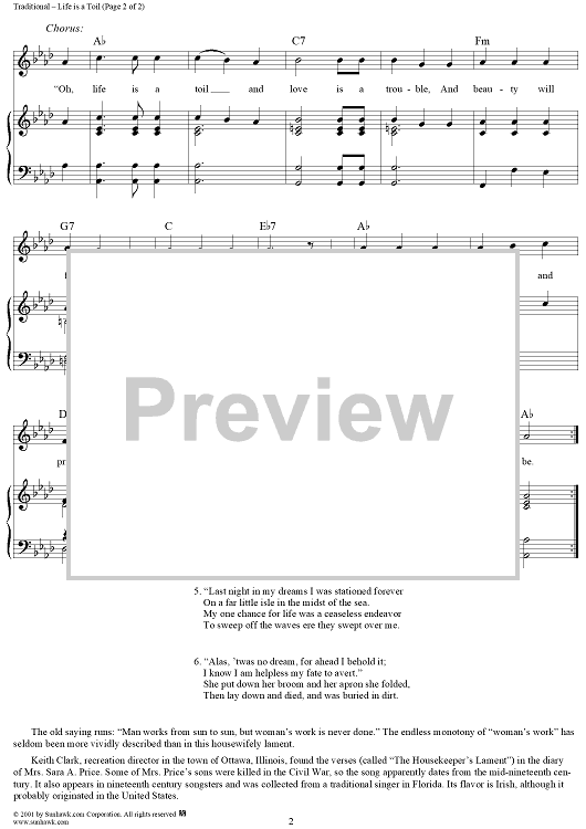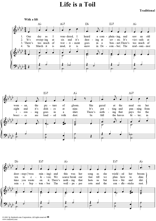 Digital Sheet Music for Life Is a Toil by Traditional scored for Piano/Vocal/Chords; id:260172
