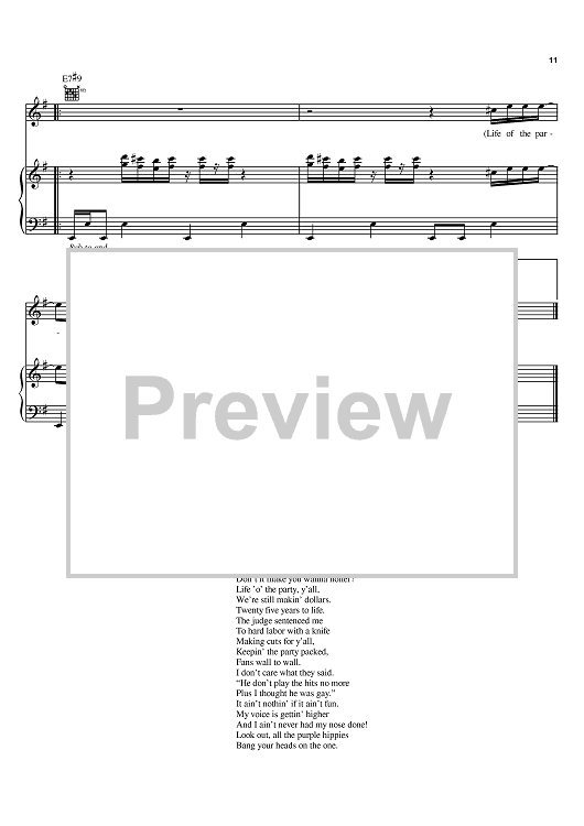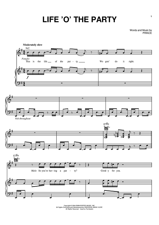 Digital Sheet Music for Life 'O' The Party by Prince scored for Piano/Vocal/Chords; id:389712