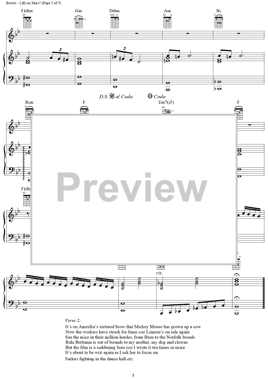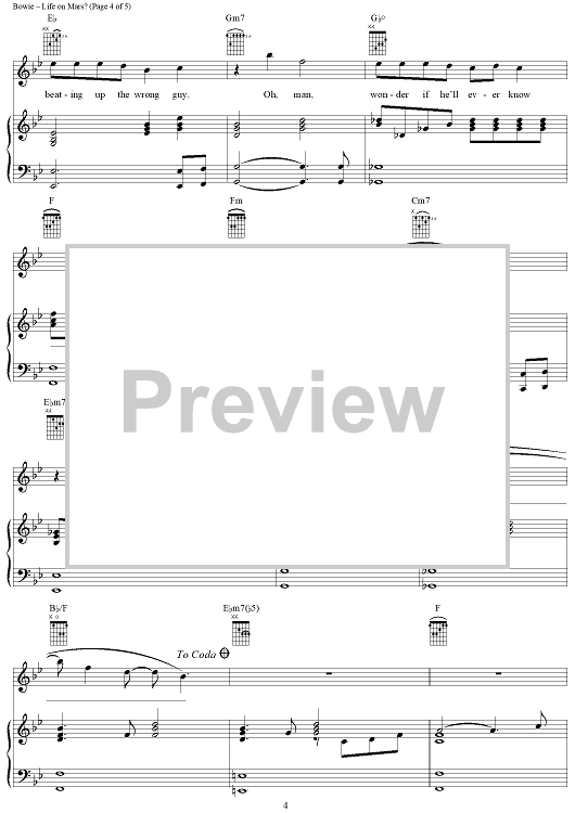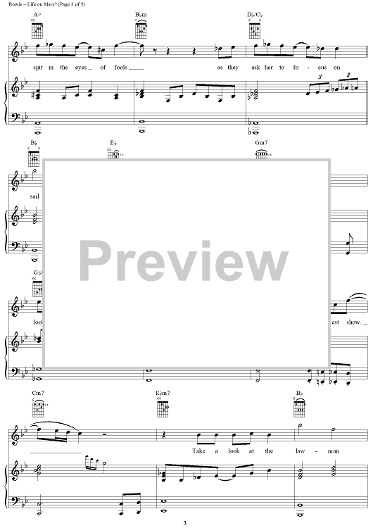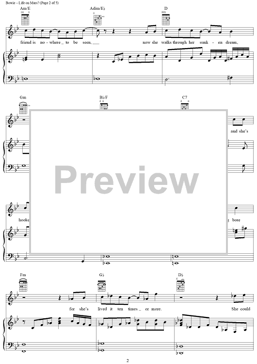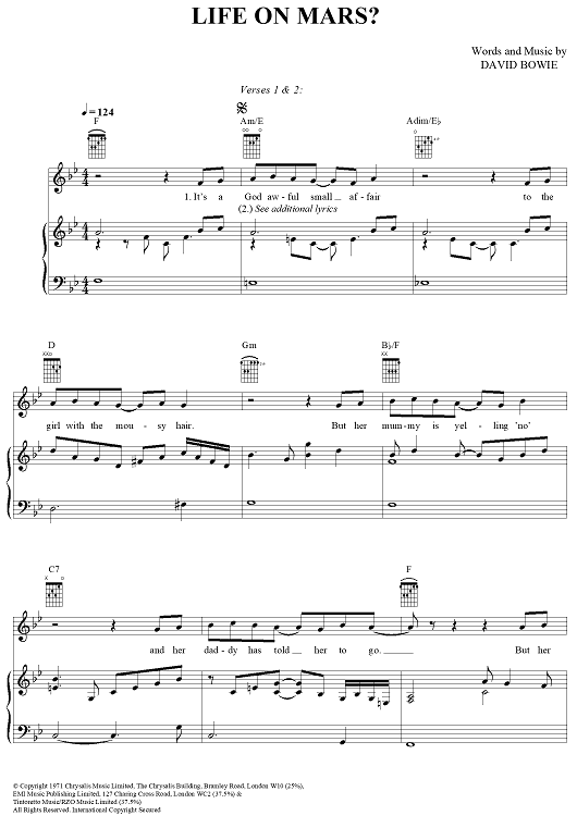Digital Sheet Music for Life on Mars? by David Bowie scored for Piano/Vocal/Chords; id:365248