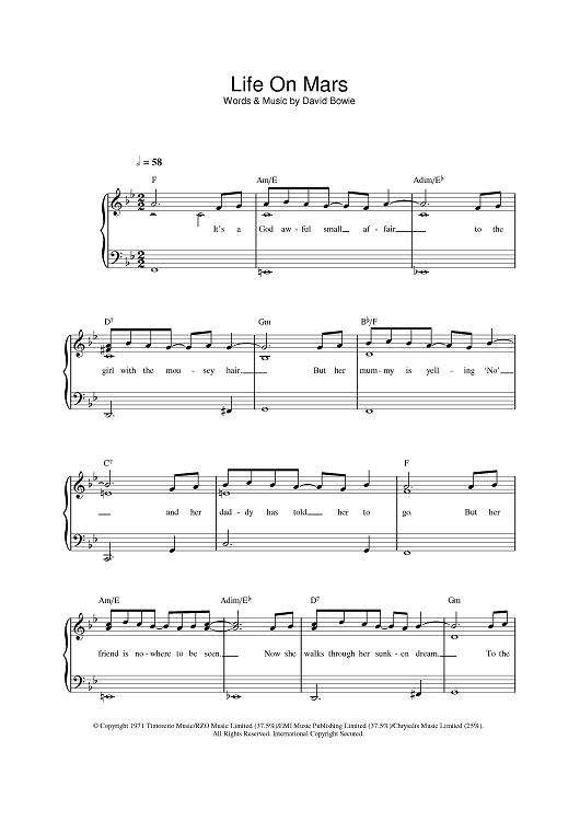 Digital Sheet Music for Life On Mars? by David Bowie scored for Piano/Vocal/Chords; id:396797