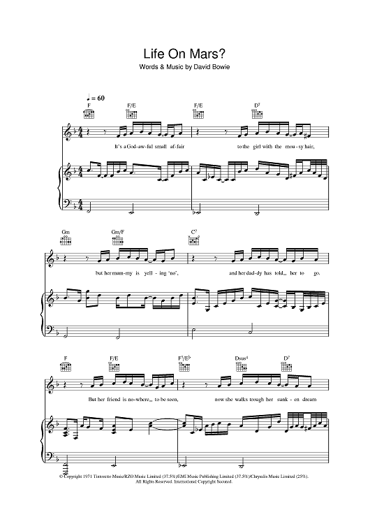 Digital Sheet Music for Life On Mars? by David Bowie scored for Piano/Vocal/Chords; id:401255