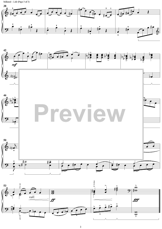 Digital Sheet Music for Life by Darius Milhaud scored for Piano Solo; id:285991