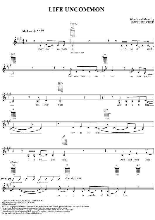 Digital Sheet Music for Life Uncommon by Jewel scored for Guitar Tab/Vocal; id:112986