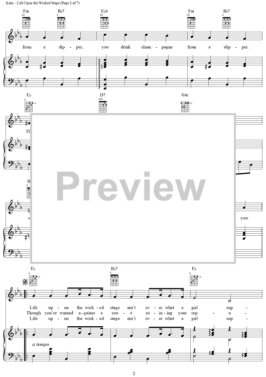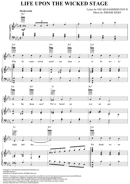 Digital Sheet Music for Life Upon The Wicked Stage by Jerome Kern, Oscar Hammerstein II scored for Piano/Vocal/Chords; id:310141