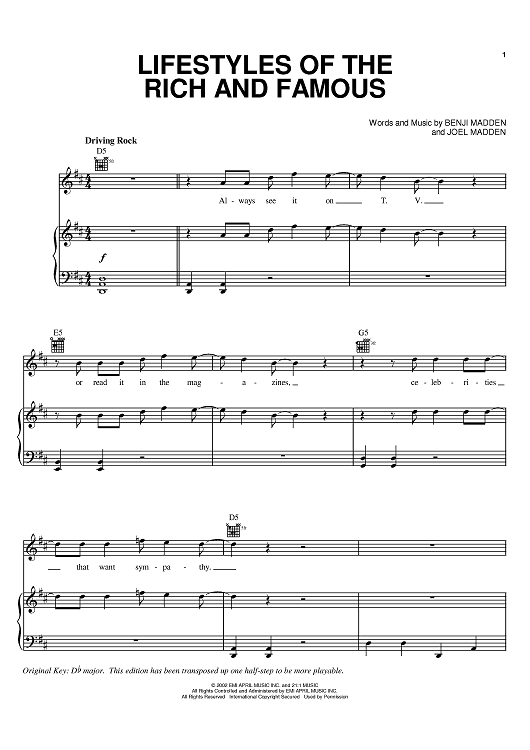 Digital Sheet Music for Lifestyles Of The Rich And Famous by Benji Madden, Joel Madden, Good Charlotte scored for Piano/Vocal/Chords; id:370466