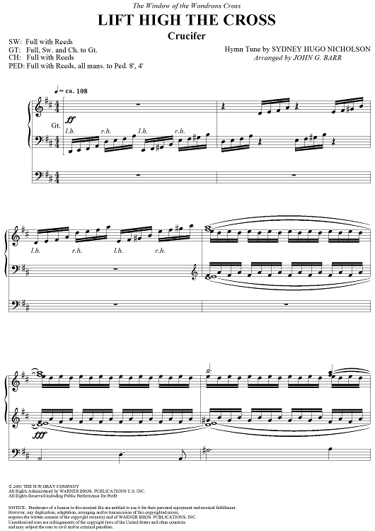 Digital Sheet Music for Lift High the Cross by John G. Barr, Sydney Hugo Nicholson scored for Organ Solo; id:292902