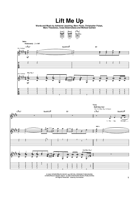 Digital Sheet Music for Lift Me Up by The Benjamin Gate, Adrienne Liesching, Marc Pautz, Christopher Poisat scored for Guitar Tab; id:372557