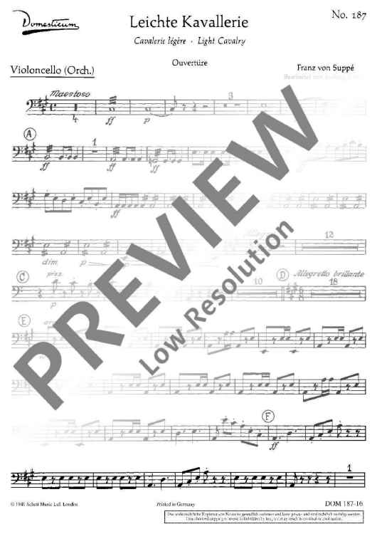 Digital Sheet Music for Light Cavalry - Cello [orchestra] by Franz Von Suppe scored for Salon Orchestra; id:487992