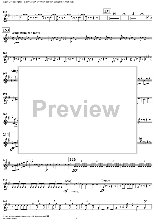 "Light Cavalry Overture - Baritone Saxophone" Sheet Music by Franz Von Suppe