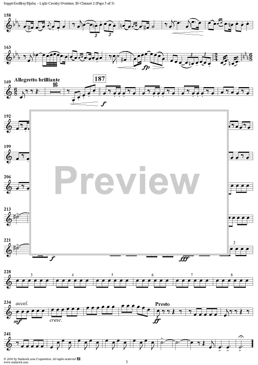 Digital Sheet Music for Light Cavalry Overture - Clarinet 3 by Franz Von Suppe, Charles Godfrey scored for Concert Band; id:151688