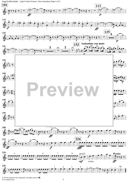 "Light Cavalry Overture - Tenor Saxophone" Sheet Music by Franz Von Suppe