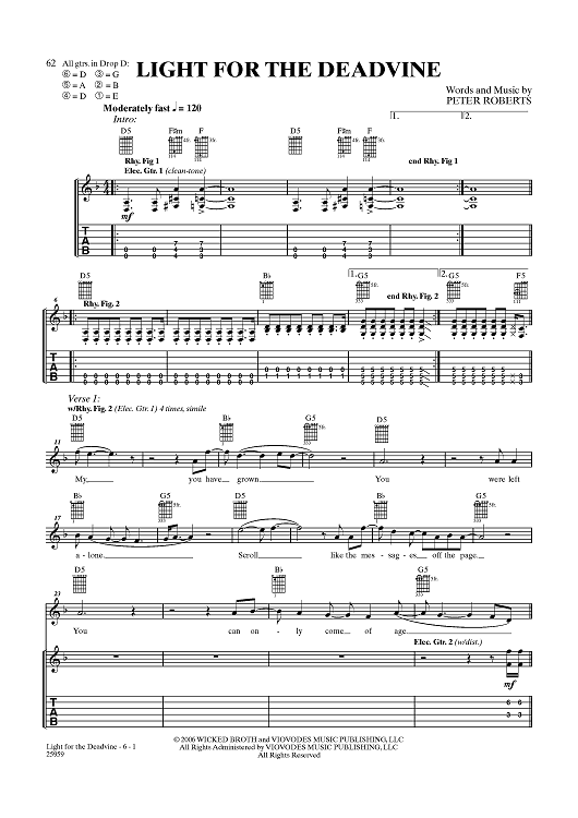 Digital Sheet Music for Light for the Deadvine by Peter Roberts, People In Planes scored for Guitar Tab/Vocal; id:356836