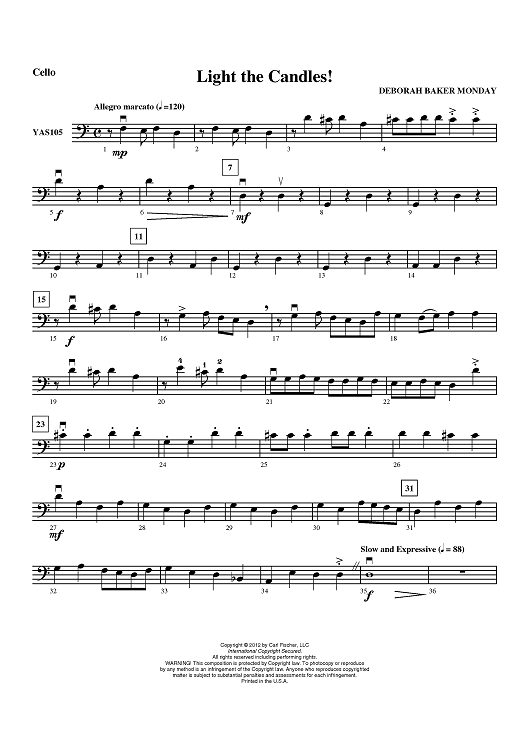 "Light the Candles! - Cello" Sheet Music by Deborah Baker Monday