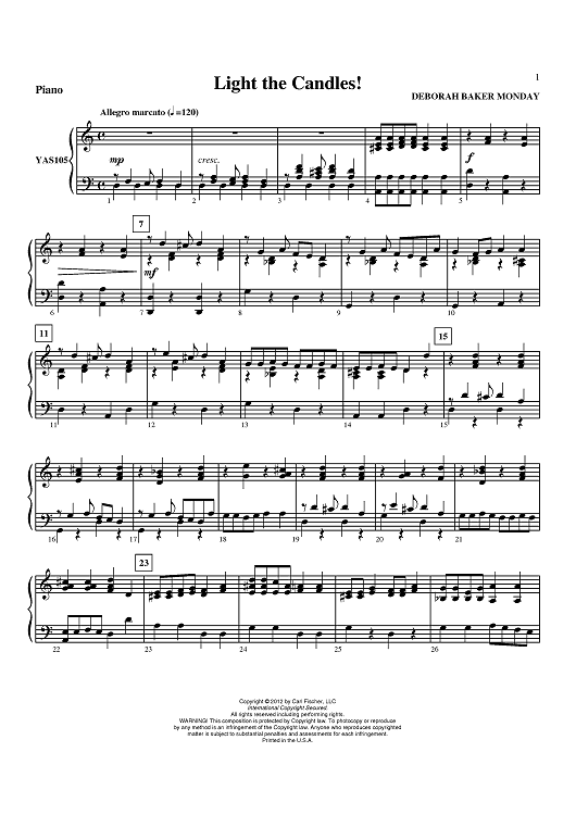"Light the Candles! - Piano" Sheet Music by Deborah Baker Monday