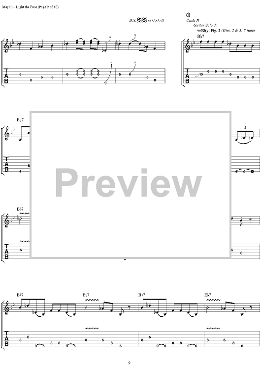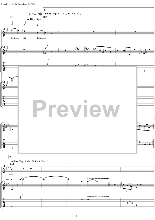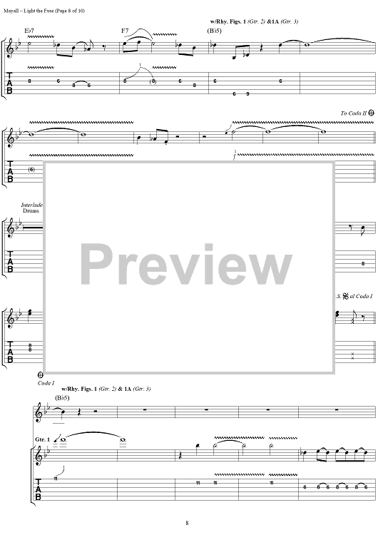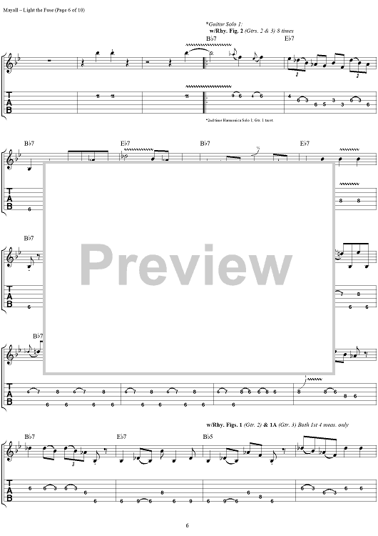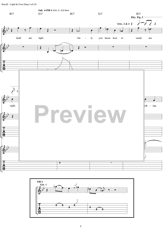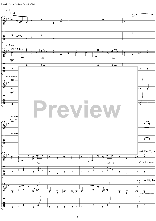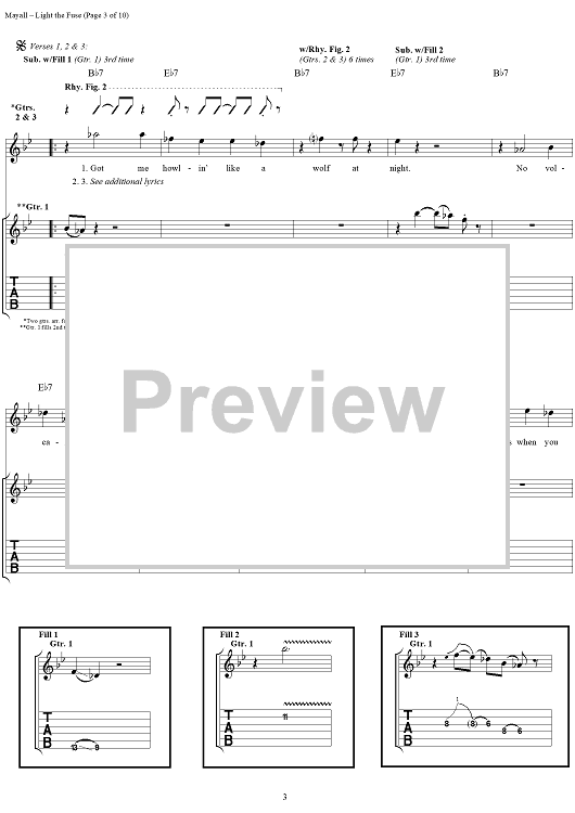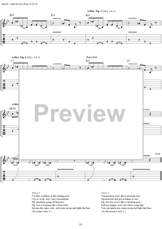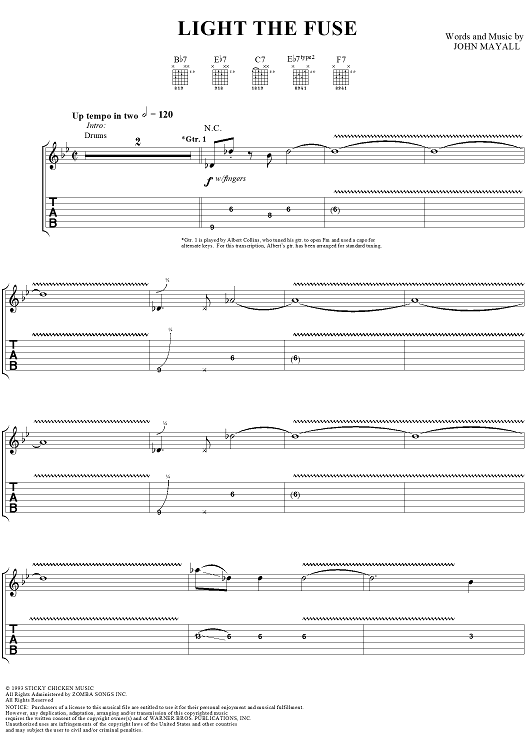 Digital Sheet Music for Light the Fuse by John Mayall scored for Guitar Tab/Vocal; id:119816